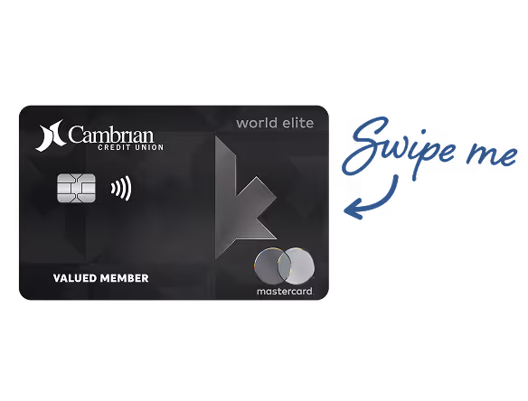 Apply for the Cambrian Cash Back World Elite Mastercard or Cambrian World Mastercard between April1, 2026 and June 30, 2026*.